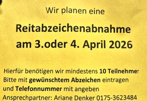 03. oder 04.04.2026 Reitabzeichenabnahme geplant