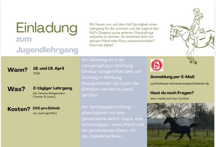 18. und 19.04.2026 Jugendlehrgang auf Hof Springbek