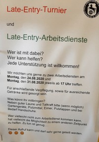 31. August 2020 Last-Entry Arbeitsdienst vor dem Turnier