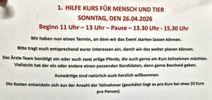 26.04.2026 Erste Hilfe Kurs für Mensch und Tier